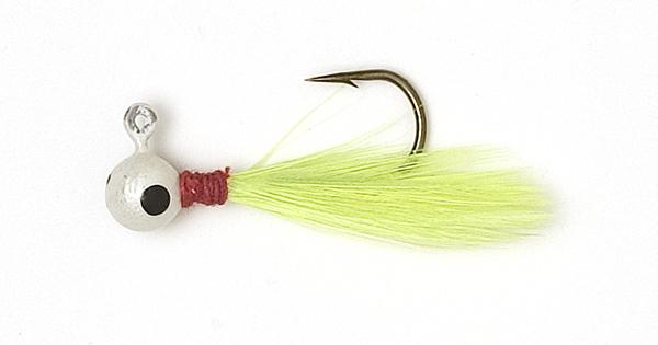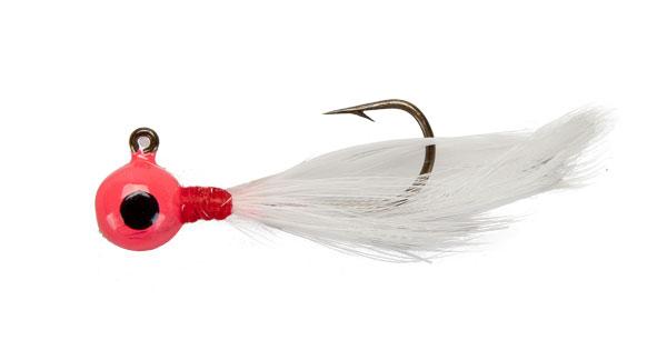 Bold in color, and in design, these jigs are a must for the fisherman's tackle box. The contrasting feather tails, give motion and distraction, while the large, life-like eyes, leave your fish chasing after you.