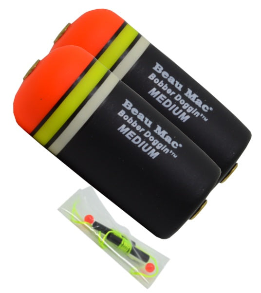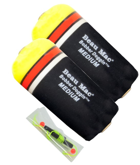 Beau Macs new bobber doggin' floats come in 4 sizes S-XL and have either a hi-vis red top or chartreuse top. Tough buoyant EVA foam material and brass eyelets make them very dependable and durable. Small and medium sizes come packaged as two packs while large and extra-large are packaged individually.