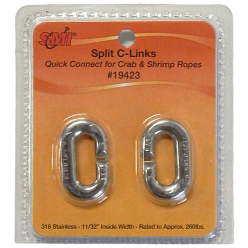 The Beau Mac Hog Ring is an essential piece of equipment for fishing enthusiasts as well as professionals. Made of stainless steel each one is rated to lift loads of up to 260 lbs so you can safely haul up a cage full of crabs. These 1/4 size 7 hog rings also have a gap for quickly and easily connecting a line. They come in a pack of two and are useful for joining two lengths of rope together when your cage needs to reach a greater depth.