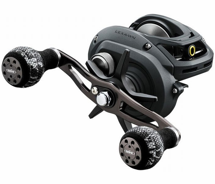 Featuring a stealthy new look for 2020, the Daiwa Lexa Type-WN Baitcasting Reels are the ideal heavy-duty baitcaster for both freshwater and saltwater applications. The Lexa Type-WN delivers power and performance unattainable by other smaller baitcasting reels, while enhancing the comfort factor with custom Winn Grip handle knobs. The Lexa Type WN is available in two high-capacity sizes, 300 and 400, with multiple gear ratios to tailor to specific fishing techniques. Anglers can also choose from two different handle styles, a traditional dual-knob handle or an oversized single-knob power handle. Whether you're targeting Musky on the Northern lakes, Stripers off the shores of the Northeast, or slinging irons at California Yellowtail, the Lexa Type-WN provides the unrivaled stopping power you'll require from a heavy-duty baitcasting reel. Features: Ultimate Tournament Carbon Drag (MAX 25lb.)Magforce Cast ControlCustom Winn Handle GripsSwept Handle with Weight-Reducing CutoutsAluminum Frame and Side Plate (gear side)Infinite Anti-Reverse (Dual Stopper)2CRBB, 4BB, 1RB.