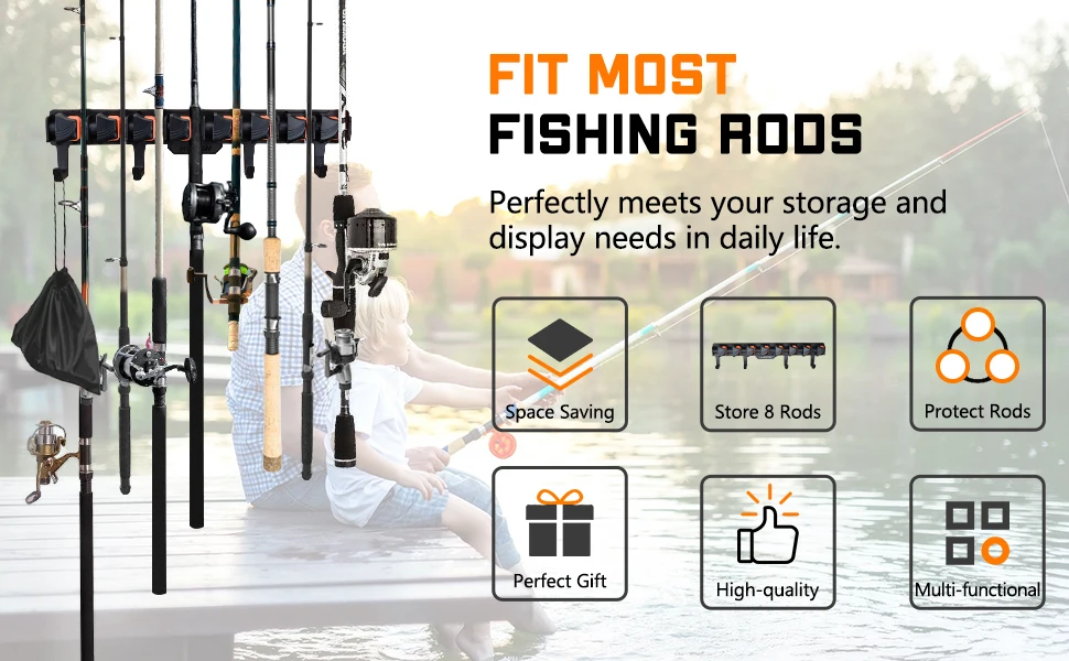 Fishing Rod Storage Rack will organize most of your fishing gear in less than 17” wall space,meet your needs of storage and display in daily life.