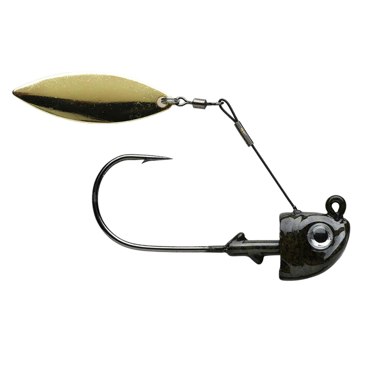 1st Gen Fishing Top Spin Jighead - 1/4 Oz. - 3/0 Hook - Green Pumpkin