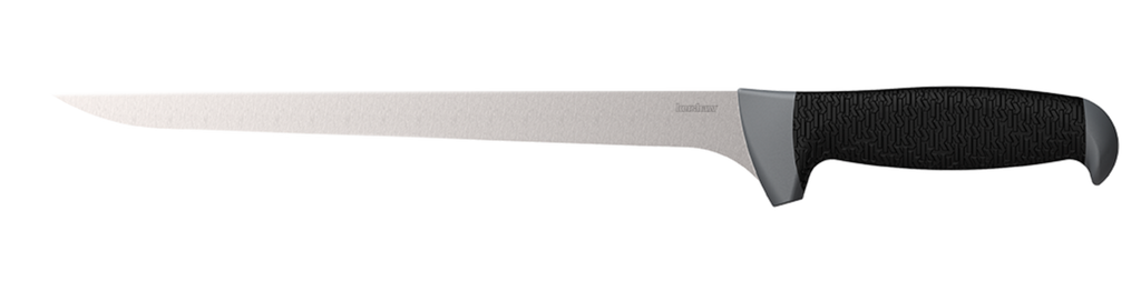 For the ones that didn't get away, you're going to need a good fillet knife. The Kershaw Fillet is perfect for filleting medium-to-larger fish with ease. The blade is made of Japanese 420J2 stainless steel with just the right degree of flex to make the job of filleting simple. This " softer" steel enables the blade to bend without breaking so that it moves easily through the body of the fish to give you the ideal fillet. Plus, the steel is highly corrosion resistant—always important when you're working around water. The handle is injection-molded for durability and contoured for filleting comfort. Neon highlights in the handle make it easy to spot in a marine environment—while still looking good with a basic black handle. The co-polymer handle material provides an excellent grip and its soft-yet-firm texture makes the job of filleting even a large catch less fatiguing. The design of the handle, with its central contour and hand protectors at both ends fit the hand and helps it lock in for an extra-comfortable grip.