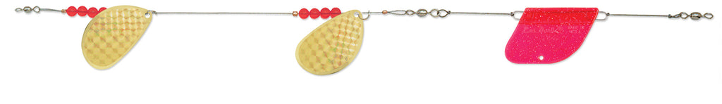 The Beer Can Lake Troll is a favorite of the most serious trolling anglers. Counter-rotating blades tame line twist while producing outstanding vibration. Extra-wide blades, featuring premium plating and polish, pulse with high-impact flash to draw fish in from long distances. Beer Can Lake Trolls are an excellent choice on large bodies of water and/or deeper depths. Integrated trolling rudder included. See Tech Report #5: Lake Trolling Trout Techniques.