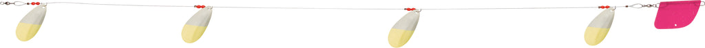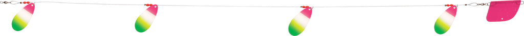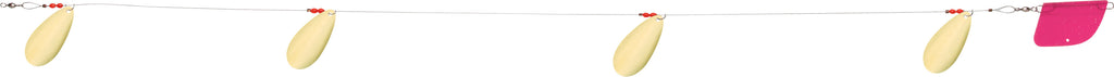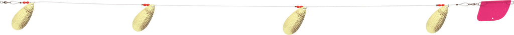 The Cowbell is our most popular lake troll and perhaps the most productive troll in the world. Its unique blade design produces an awesome fish-calling vibration while Luhr-Jensen premium plating and polishing of the blades offer maximum flash. You'll draw fish from greater distance, and produce more strikes with Cowbell trolls in your spread. Cowbell trolls come completely rigged with flexible cable rigging, trolling rudder and a selection of blade sizes and troll length. With multiple sizes and a host of proven finishes, you'll be sure to maximize success on your local waters. See Tech Report #5: Lake Trolling Trout Techniques.