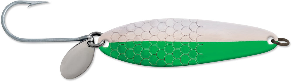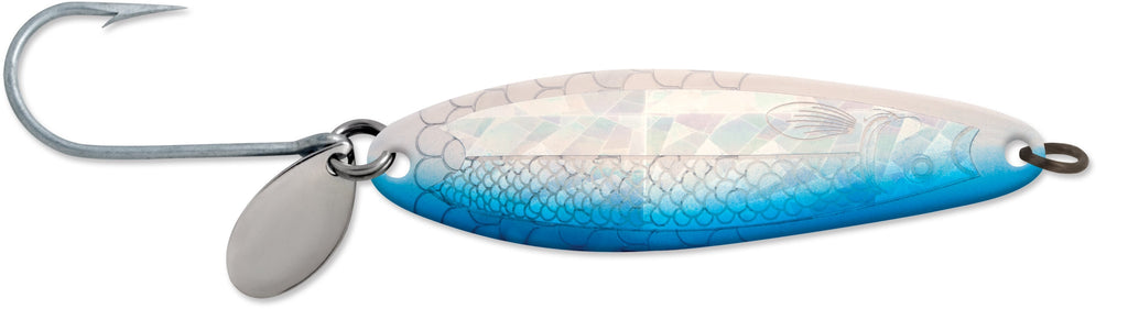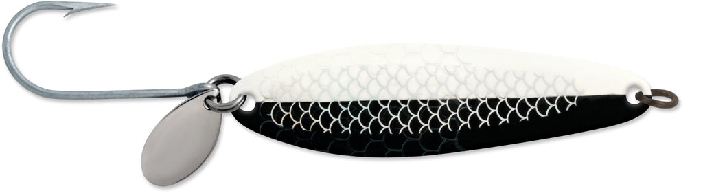 It only took a short period of time for the Coyote spoon to rise to the top of ocean salmon fisheries off of Oregon, Washington and Western Canada. The spoons thin material creates a very active swimming action that salmon can't resist. Sized from 3-1/2- to 6-inches in length, sizes should be chosen to match the baitfish on which salmon are feeding. Smaller sizes when candlefish and anchovies are most prevalent, larger in late season when herring become the food of choice. The Coyote spoon performs exceptionally well behind dodgers and flashers alike.