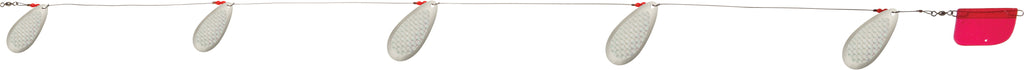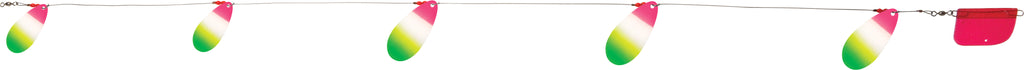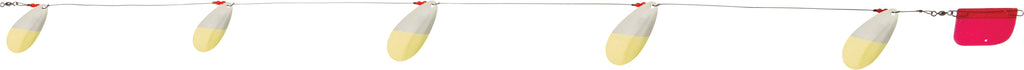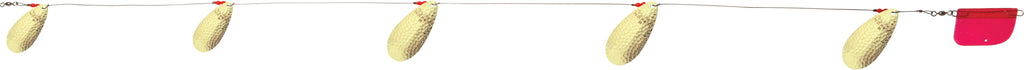 The Cowbell is our most popular lake troll and perhaps the most productive troll in the world. Its unique blade design produces an awesome fish-calling vibration while Luhr-Jensen premium plating and polishing of the blades offer maximum flash. You'll draw fish from greater distance, and produce more strikes with Cowbell trolls in your spread. Cowbell trolls come completely rigged with flexible cable rigging, trolling rudder and a selection of blade sizes and troll length. With multiple sizes and a host of proven finishes, you'll be sure to maximize success on your local waters. See Tech Report #5: Lake Trolling Trout Techniques.